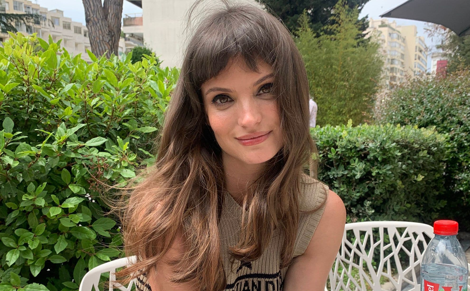 Charlbi Dean met haar hondje in Cannes