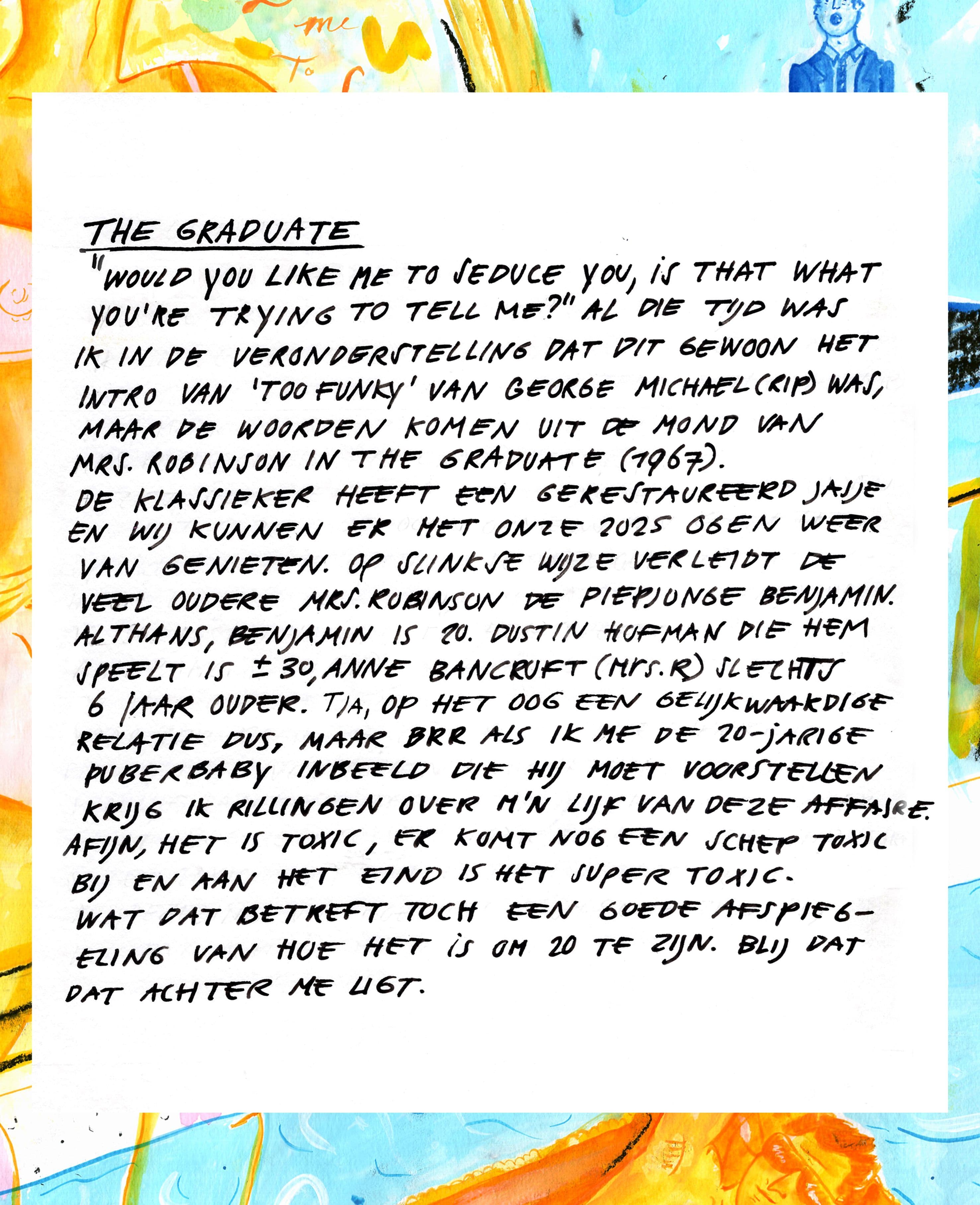 Was getekend: The Graduate. Eerst is het toxic, dan volgt nog een schep toxic, en aan het einde is het supertoxic
